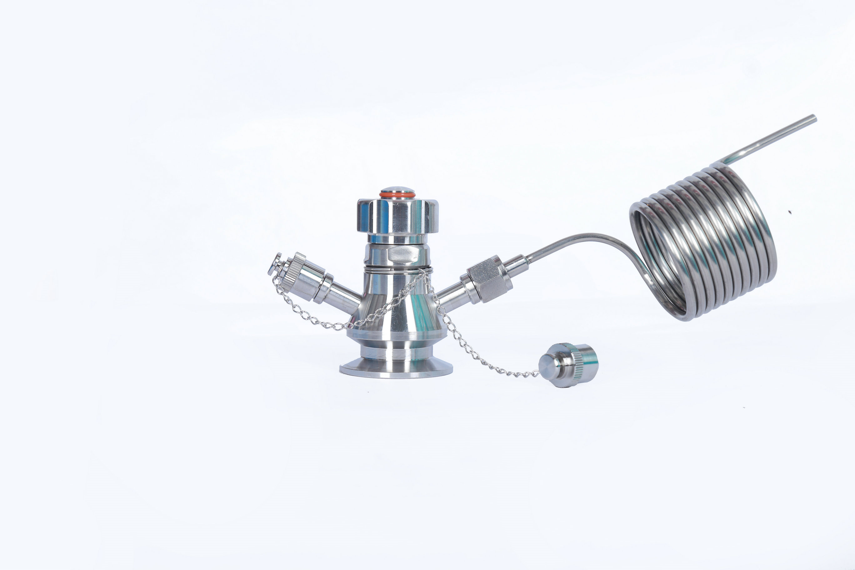 消沫器具備有特種功能,鏈接口掛在無菌取樣閥螺紋絲出口上,(設計為螺旋式)。管內(nèi)徑光潔度光滑,取樣閥打開流向到消沫器盤管上,經(jīng)過盤管螺旋走向,減少啤酒氣體壓力,出酒很少有沫,保證取樣時的酒液口感度 同時也可以滿足于各種生產(chǎn)工藝需求,也可以用來打酒設備。該啤酒消沫器不銹鋼SUS304材質(zhì),衛(wèi)生設計,滿足于啤酒業(yè)等各種工藝領域。